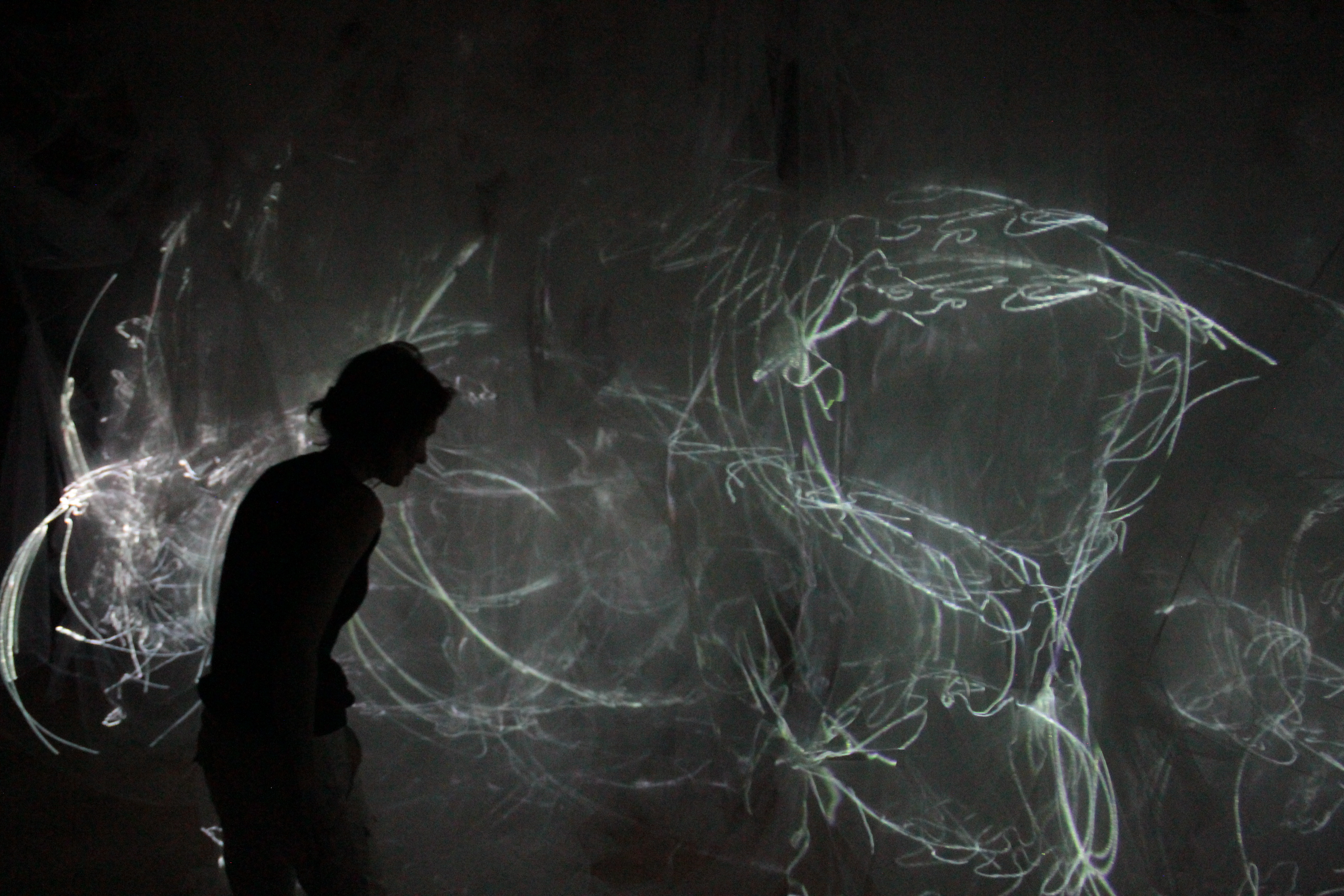 A one night workshop was held for local tweens to experiment with drawing with light onto the projections.
